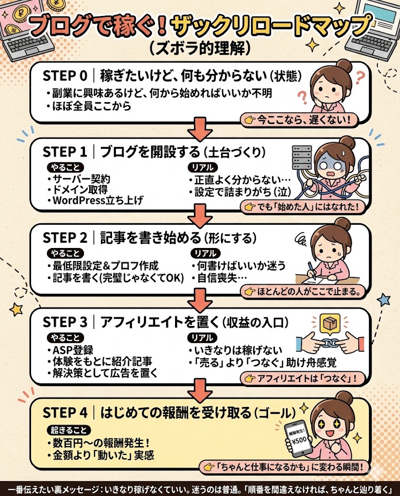 ブログで稼ぐ!ザックリロードマップ(ズボラ的理解)