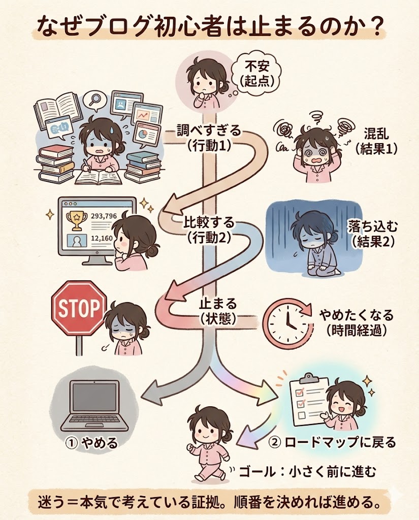 この記事では、ブログ初心者が「何から始めるのか」を順番で整理しています。